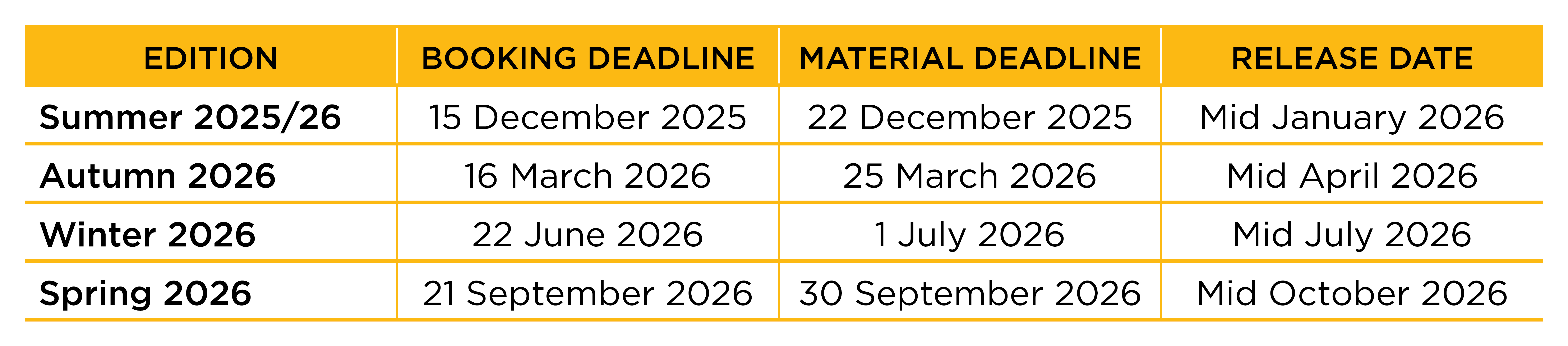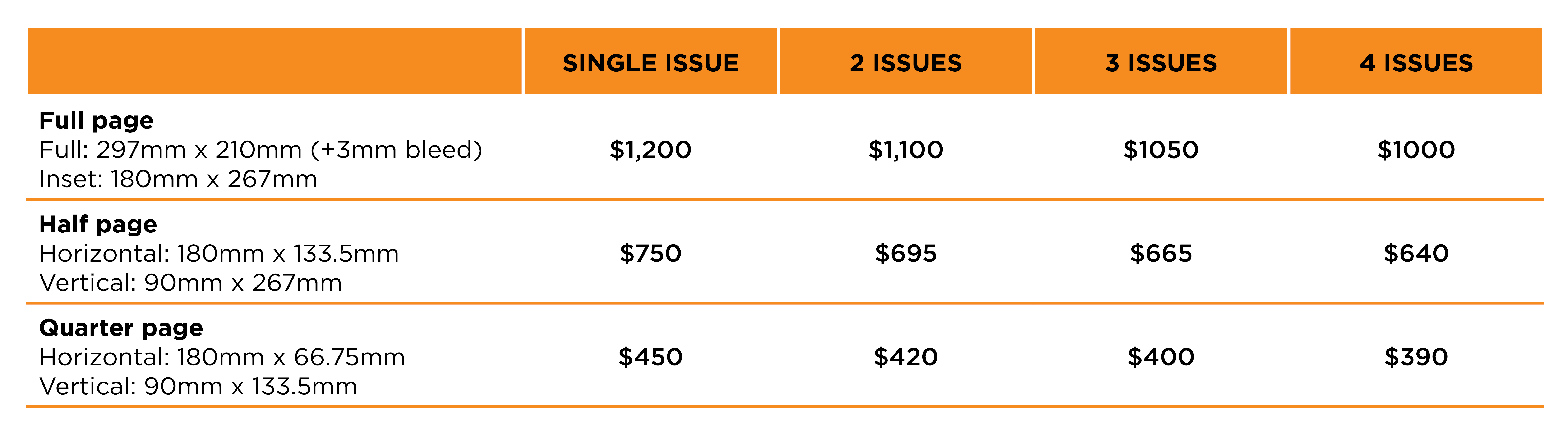 Complete the advertising booking form below or download the advertising rate sheet and booking form here.