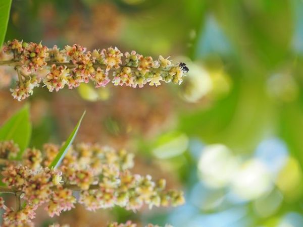 Stingless and solitary bees actively forage for both nectar and pollen, while blowflies and hoverflies visit for nectar only. Stingless bees spent the longest time on each flower, but hoverflies visited more flowers per minute. Owing to their small size, stingless bees fit completely inside the middle of mango flowers and they repeatedly walk around and across the flowers with their abdomen and legs making contact with reproductive parts of the flowers. We observed a positive relationship between fruit set and visitation by stingless bees and blowflies which shows that insect visitations significantly increase fruit set in mango orchards.